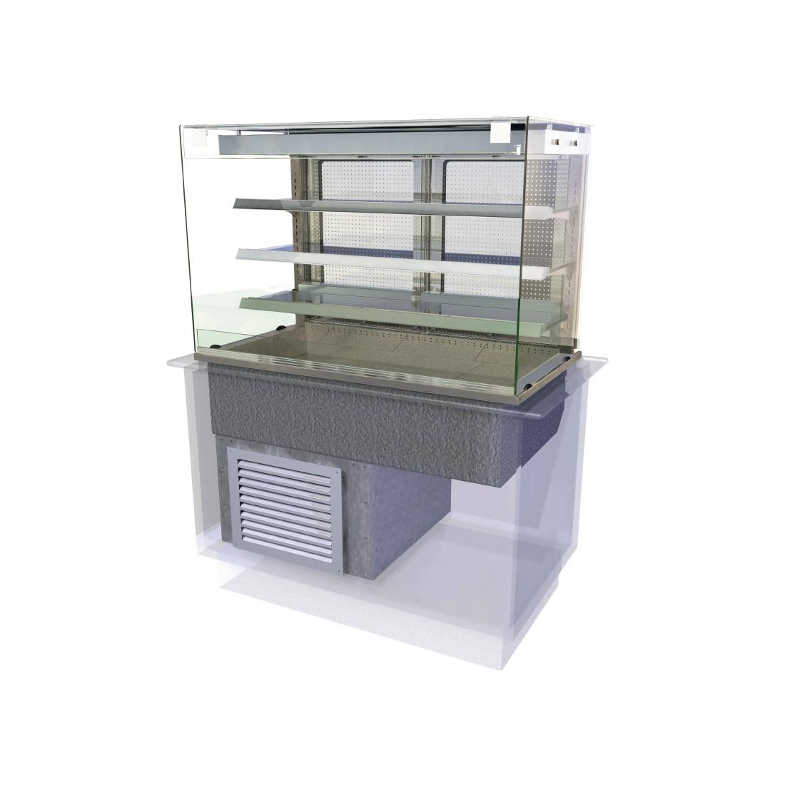 Description : Illuminate, chill and display refrigerated food or drink with CED's rectangular shaped Kubus self help cold multideck (Rear Doors). This energy efficient 3/1 GN size refrigerated display chills by hydrocarbon refrigerant (r290) - a solution that's kinder to the environment and your budget. The rear loading self help multideck is designed for use in a free standing countertop and fitting the air grills and rear vent supplied, provide the ventilation needed for the underslung refrigeration condensing unit. Flat, toughened glass sneeze screen and side glass protection are provided to the customer side of the display. The display area features 3 no. chilled toughened glass display shelves, adjustable in both height and angle, providing increased cold product display area within a minimum footprint. The front edge of each chilled shelf features a product stop and 40mm tall 'point of sale' display/ticket strip. The 3/1 GN cold well area below the shelves provides further chilled merchandising. Product illumination is from diffused lighting in the rectangular profile gantry. The gantry also houses an eye level digital temperature display and 'temperature lockable' control panel, to operator side of the display. The multideck has 24 hour operation and holds food core between 2°C to 5°C. The display area has double glazed hinged rear doors for restocking and the self help superstructure is made from bright polished steel and aluminium rectangular profiles. Modular removable deck plates in the chilled multideck make for easier cleaning and an integral condensate water evaporator eliminates the need for site drainage. The display comes complete with air inlet grills, lifting kit and a 2m lead and plug top for installation.